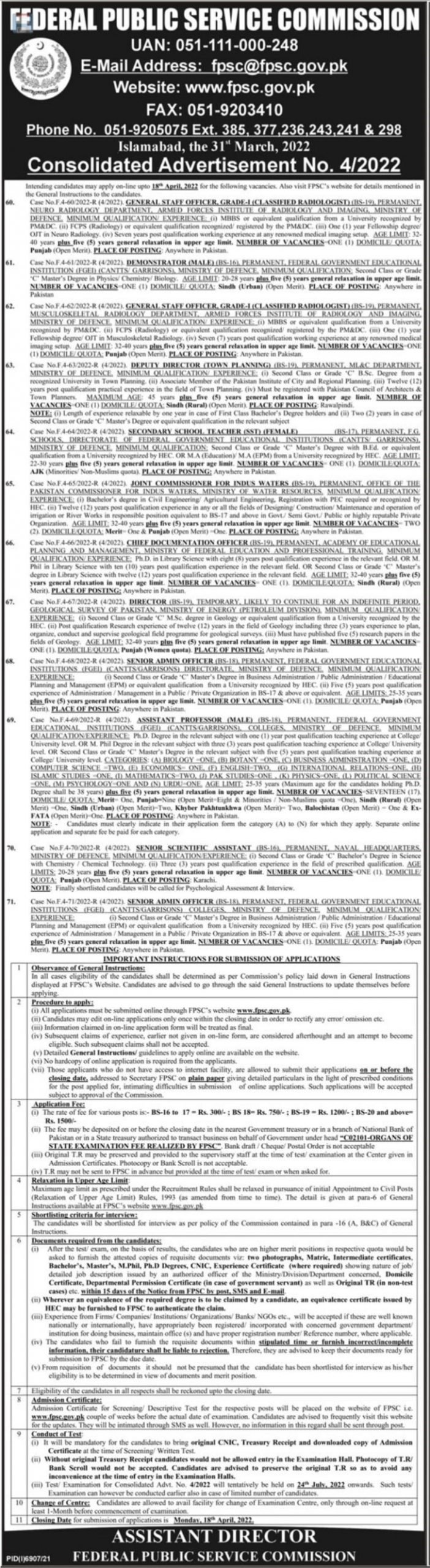 Pakistan’s Federal Public Service Commission Announced FPSC Jobs 2022 Advertisement No 04 for Pakistani Citizens. To Apply Online You Can Also Visit FPSC’s official Website www.fpsc.gov.pk. The FPSC Jobs 2022 has been published in all newspapers of Pakistan. Only eligible candidates can apply for the latest Govt FPSC Jobs.